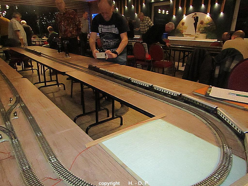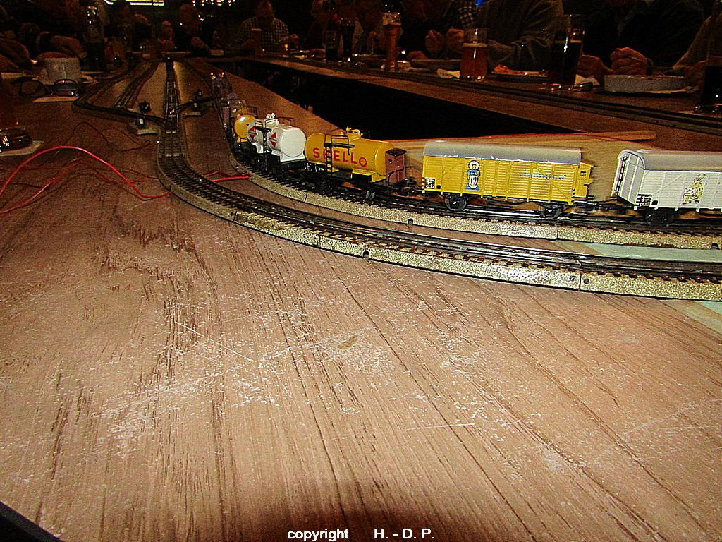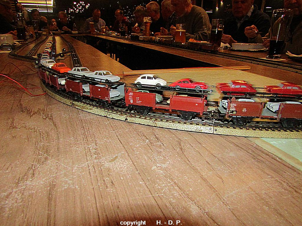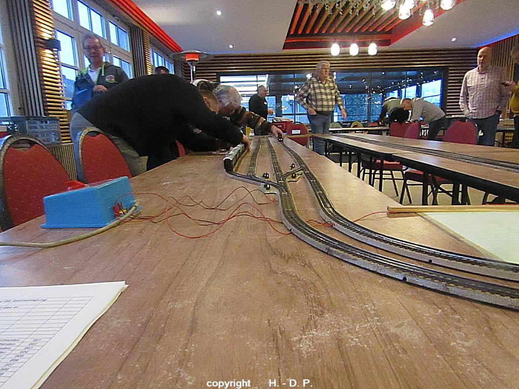 Jetzt standen wir natürlich vor der Frage bauen wir nur ein einfaches Oval auf oder trotz eines fehlenden Trafo ein Doppeloval. Wir haben uns dann doch für ein Doppeloval entschieden und es klappte dann auch sehr gut. Auch bei uns analogen gab es einiges zu sehen, so z.B. ein langer Primex Orient Express und das Sahnehäubchen war die Märklin Replika CCS 700. Es gab auch einige alte Guß Güterwagen und einen langen Autotransport Zug zu sehen. Leider, oder zum Glück waren die Stüle um die Anlage fast alle besetzt, so das ich nur wenige Bilder machen konnte, dafür sind aber alle Züge auf einem längeren Video zu sehen.