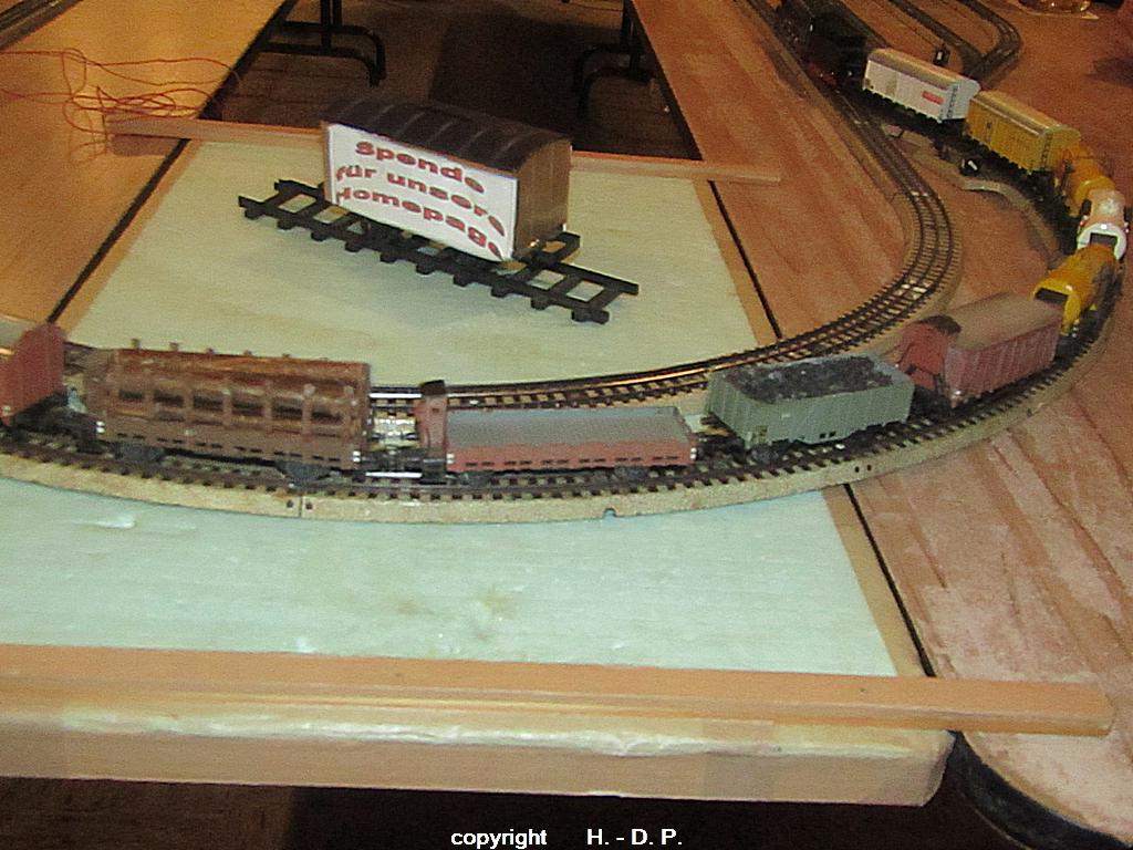 Leider fehlte gestern unser Hans - Gerd und so mußte ich meine Schienen mitbringen, die leider in einem schlechteren Zustand sind als die vom Hans - Gerd. Auch fehlten die Signale für die Abstellgleise und dann hatte ich auch noch vergessen einen 2. Trafo einzupacken. Ich muß gestern ein Zwilling gewesen sein, denn einer allein kann nicht so blöd sein wie ich.