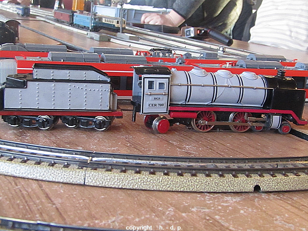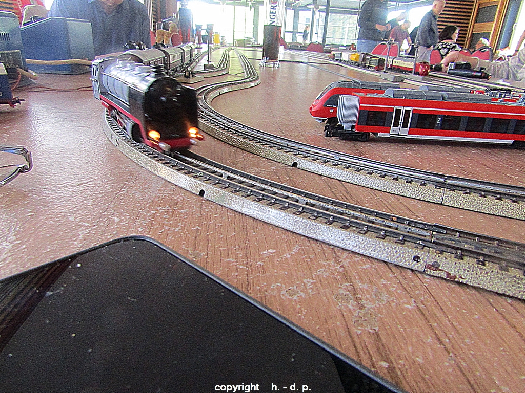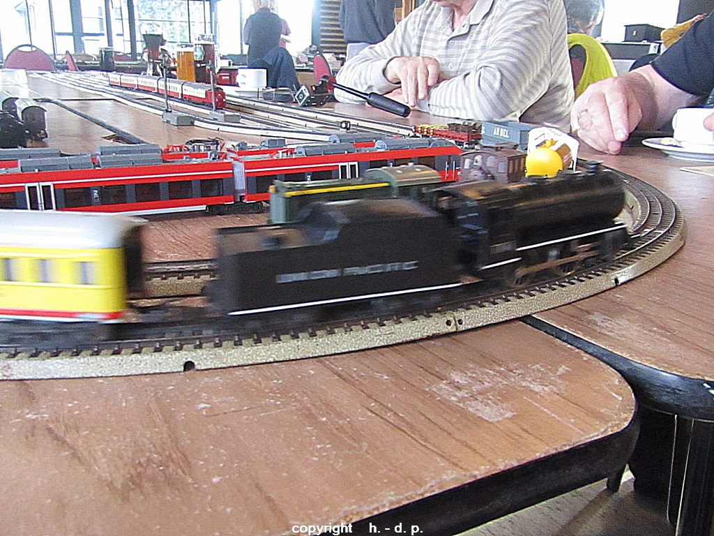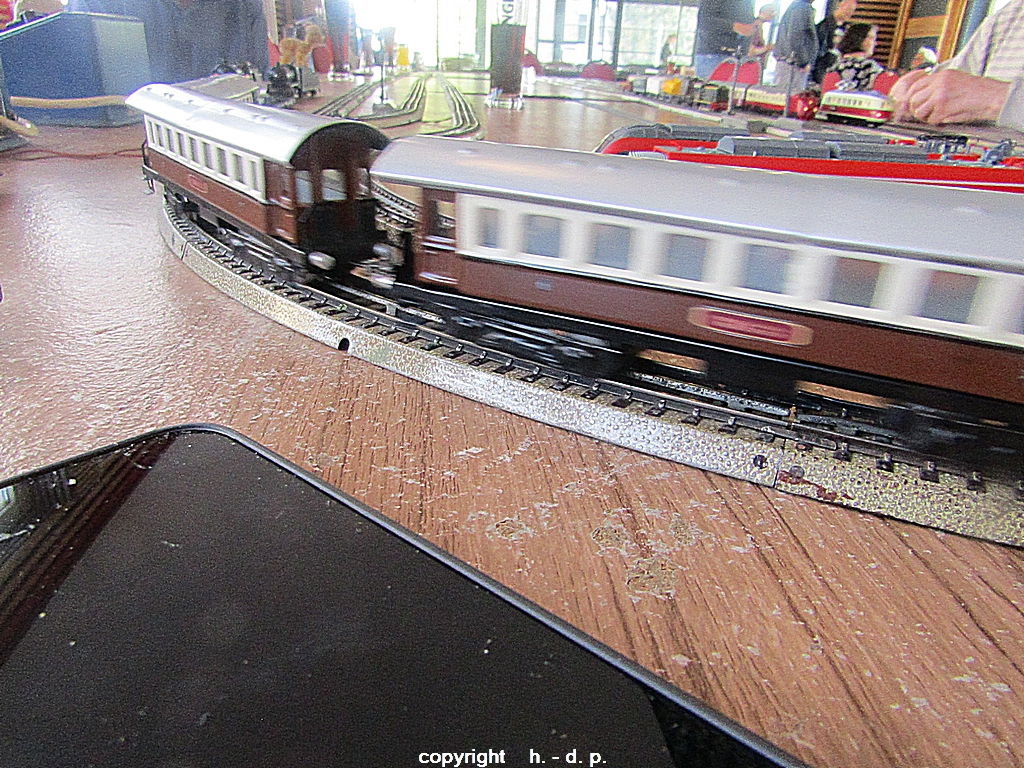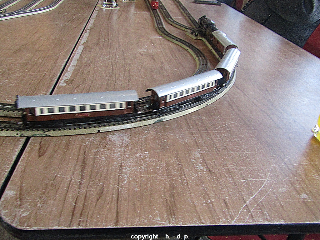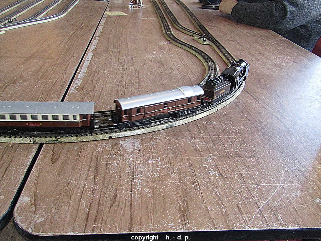 weiter geht es mit der analogen Bahn und da zuerst ein Blick in Hans - Gerd seiner Wunderkiste. Alle Loks die er heute ddbei hatte waren Umbauen und Umlackierungen der Dampfok aus der Jubiläums Zugpackung 0050.