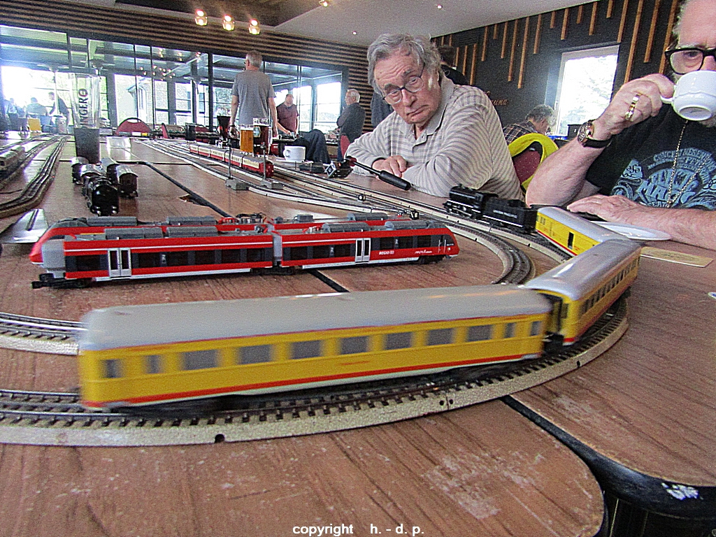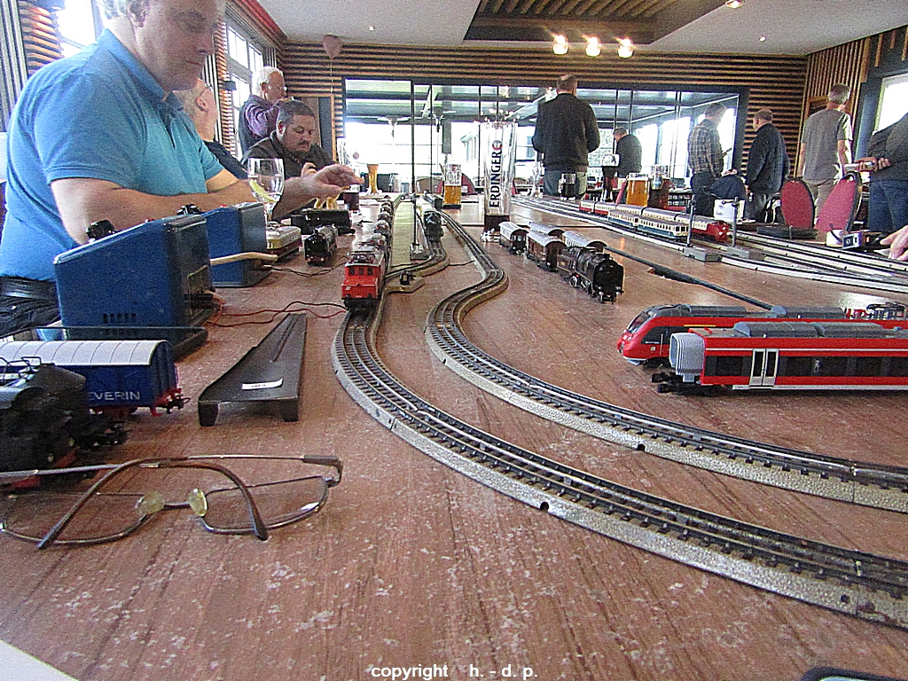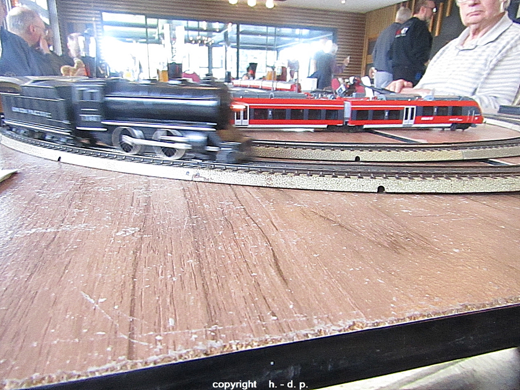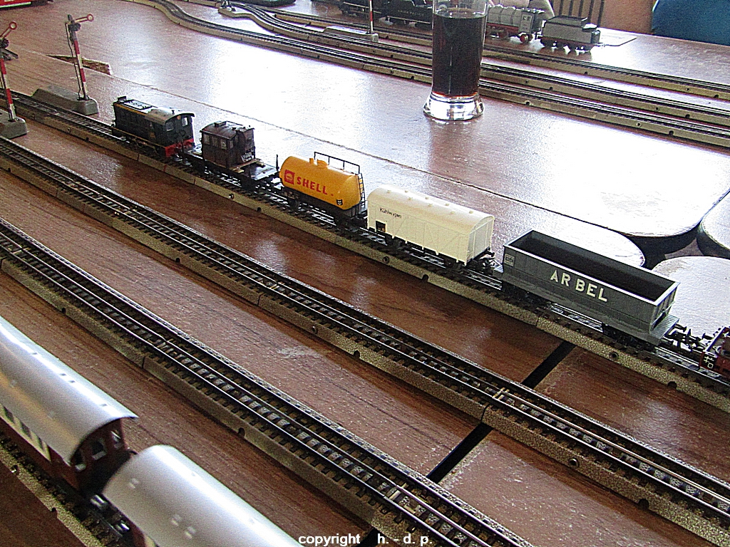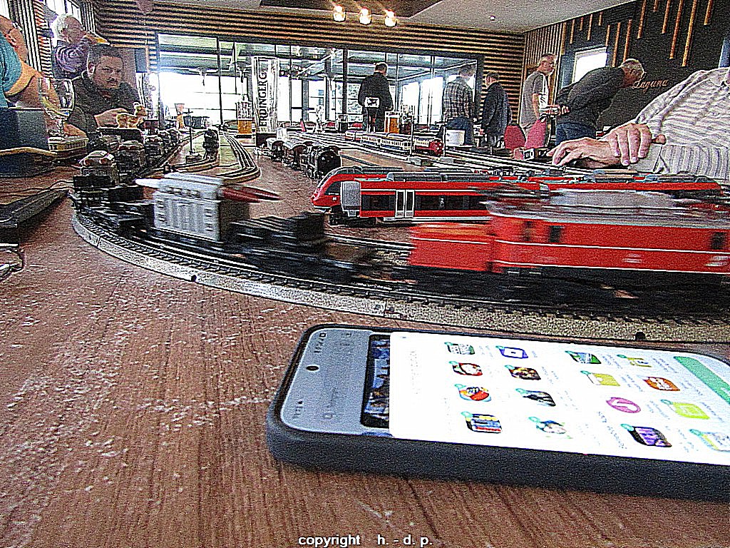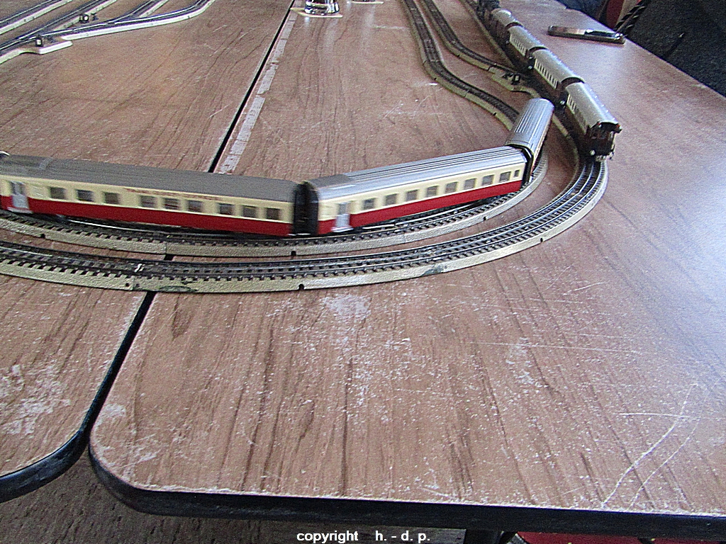 weiter geht es mit der analogen Bahn und da zuerst ein Blick in Hans - Gerd seiner Wunderkiste. Alle Loks die er heute ddbei hatte waren Umbauen und Umlackierungen der Dampfok aus der Jubiläums Zugpackung 0050.