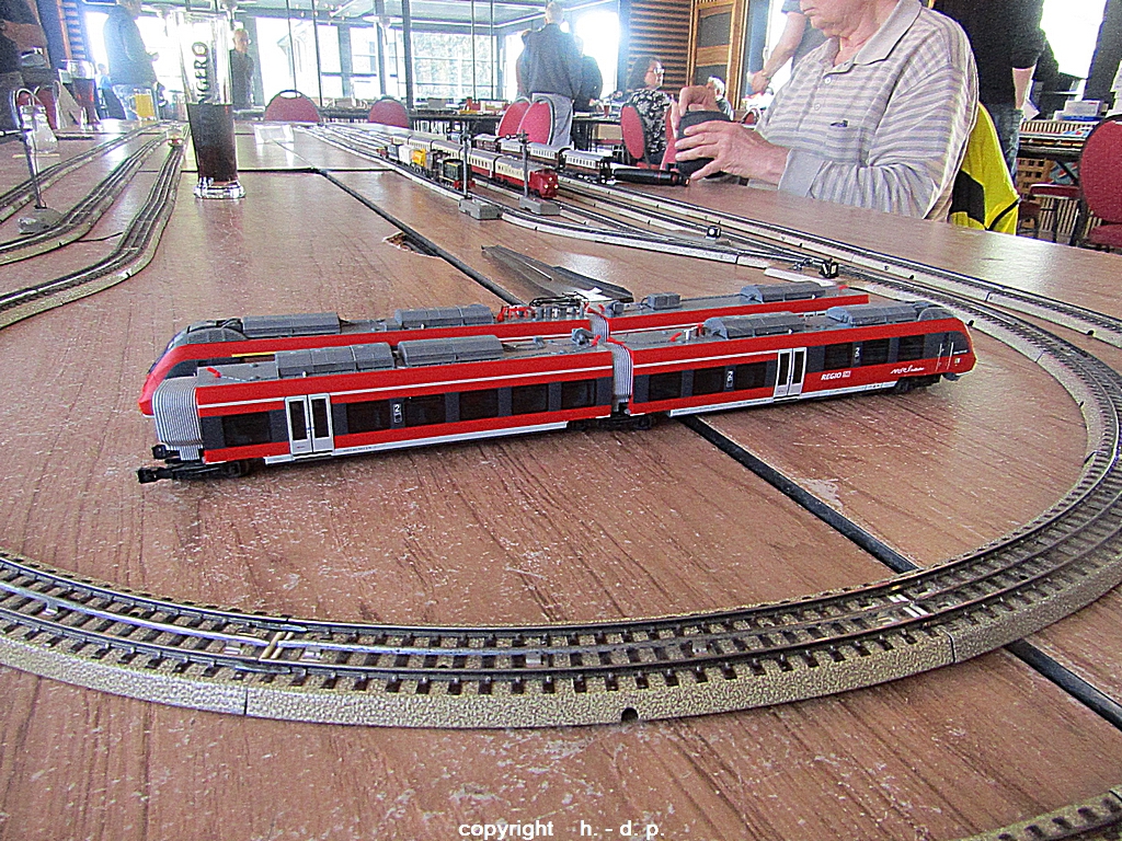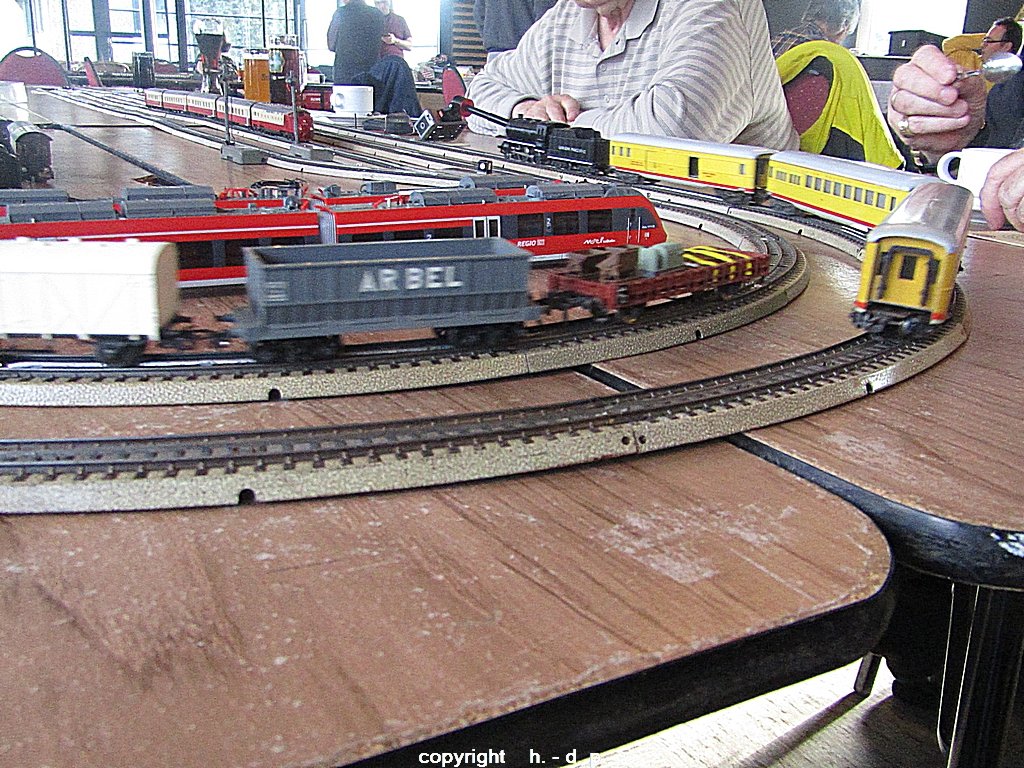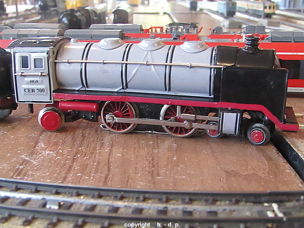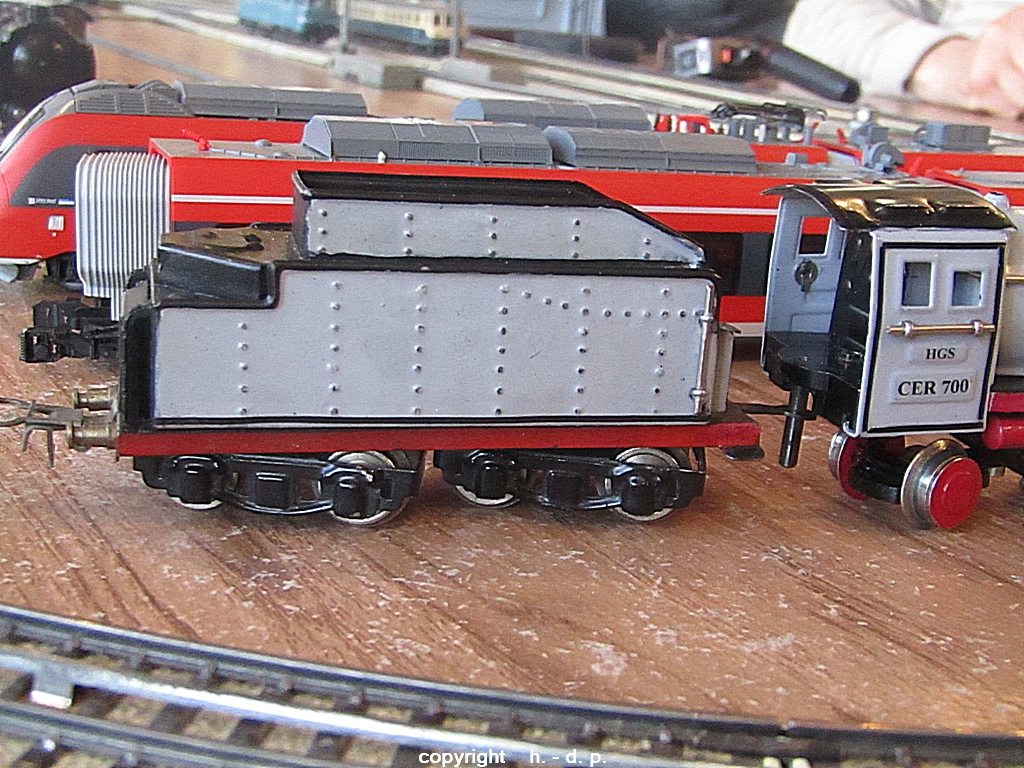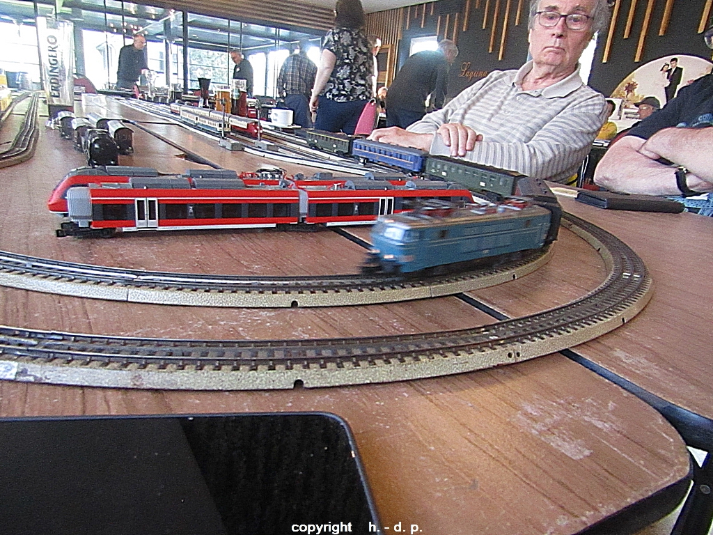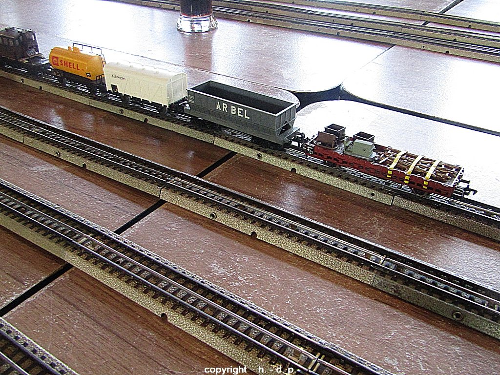 weiter geht es mit der analogen Bahn und da zuerst ein Blick in Hans - Gerd seiner Wunderkiste. Alle Loks die er heute ddbei hatte waren Umbauen und Umlackierungen der Dampfok aus der Jubiläums Zugpackung 0050.
