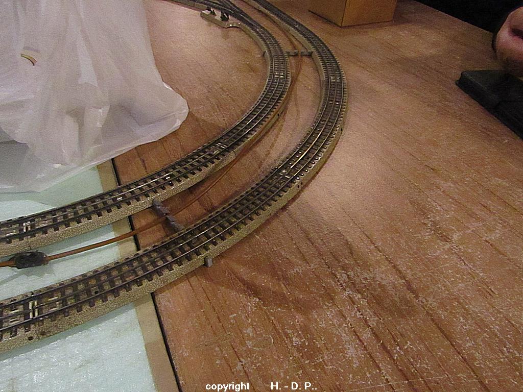 Die ersten Bilder zeigen den ersten Versuch die Stromzuführung bei der un 70 Jahre alten M- Gleise zu verbessern.