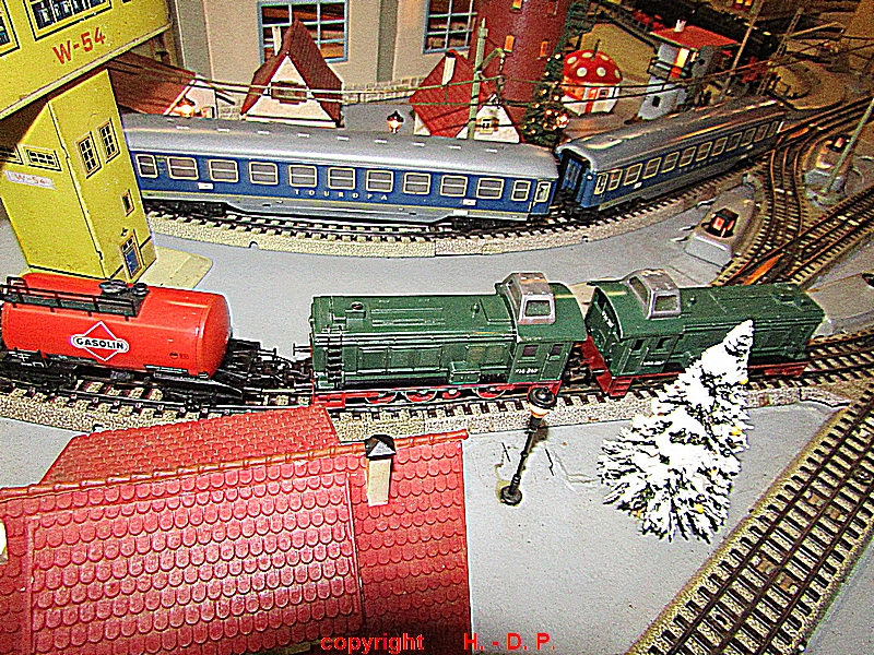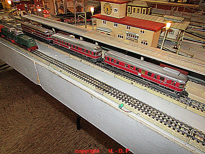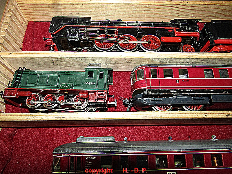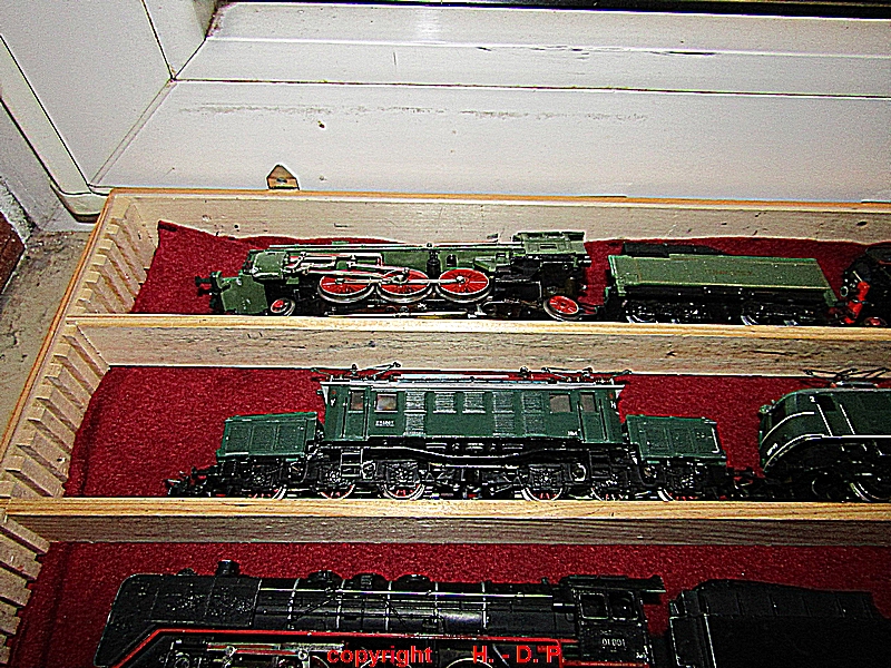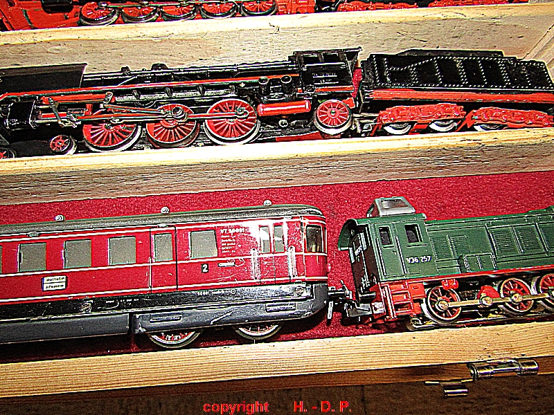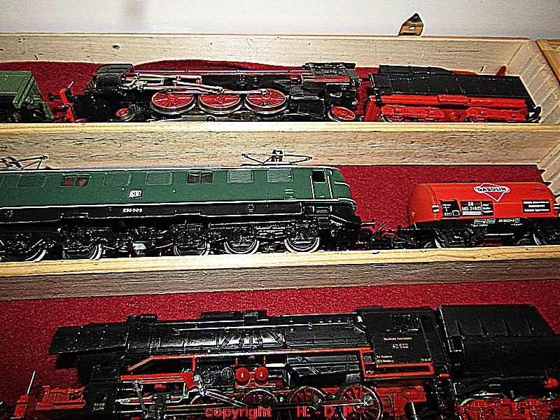 und zum Schluss wie immer die Bilder der Nostalgie Anlage, die heute ganz im Zeichen der Firma TRIX stand. Die ersten Bilder zeigen den Inhalt von Hans - Gerd seinen Schatzkisten