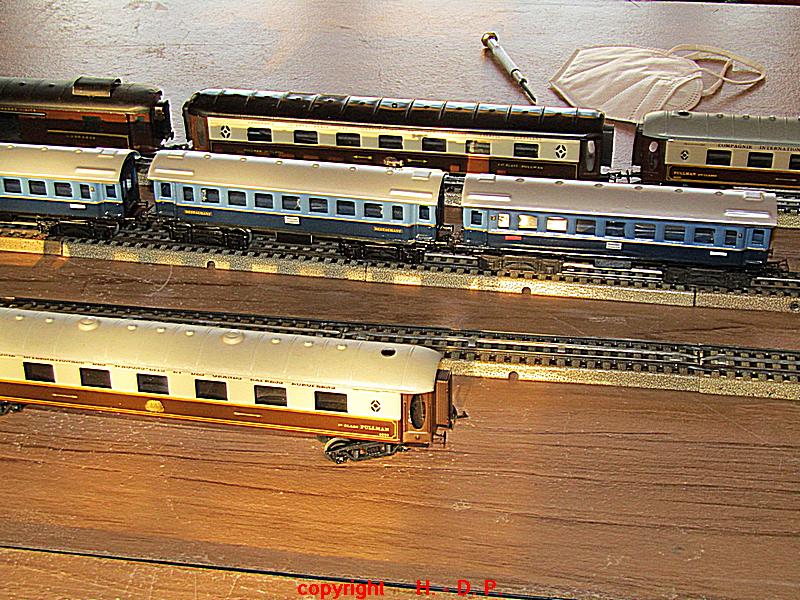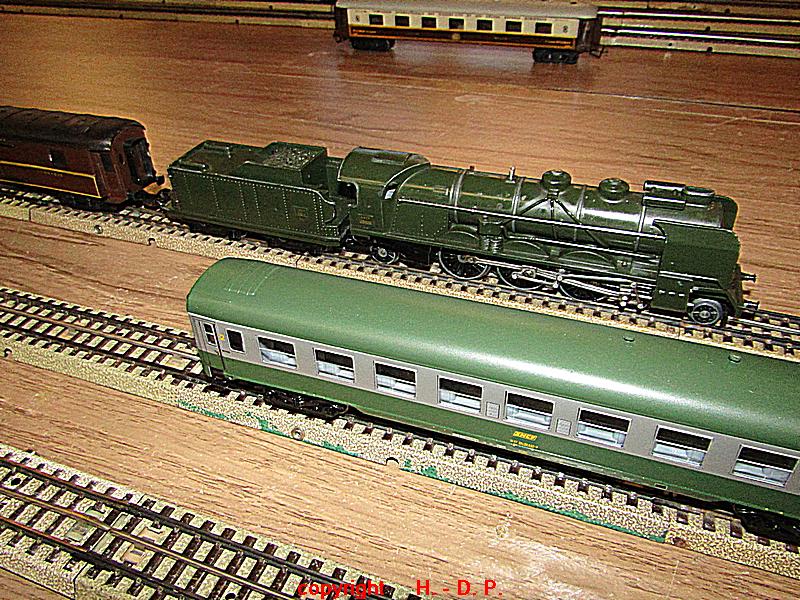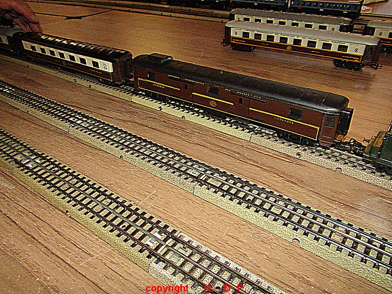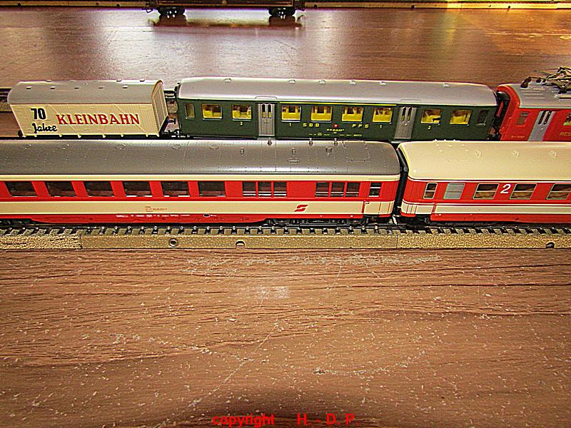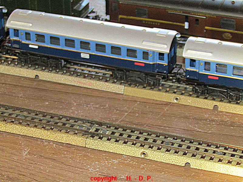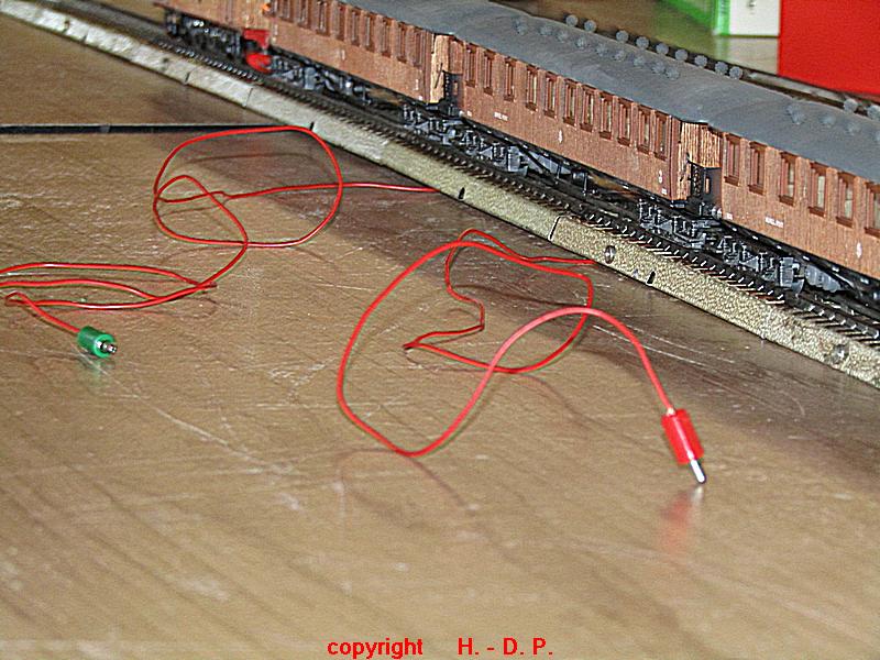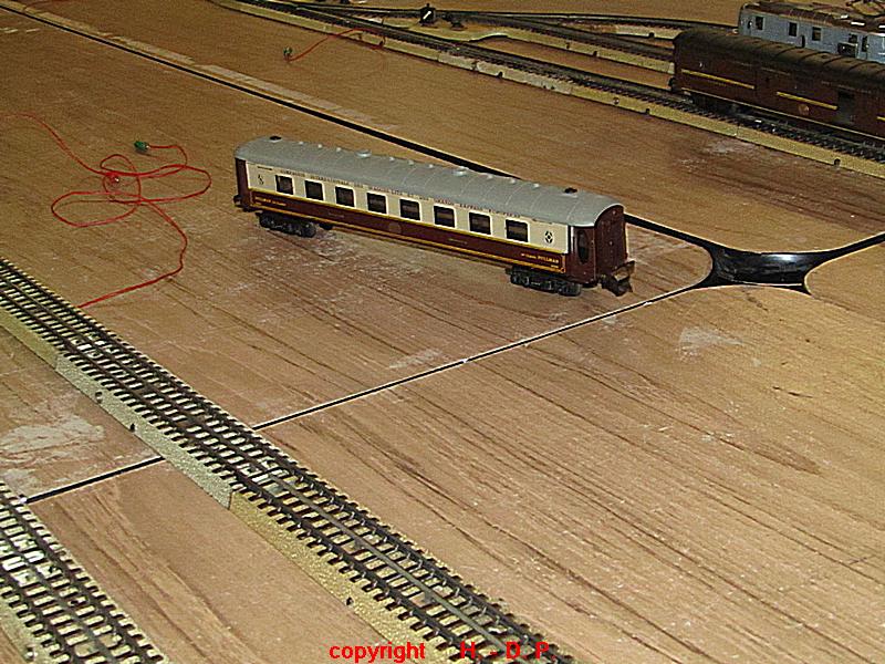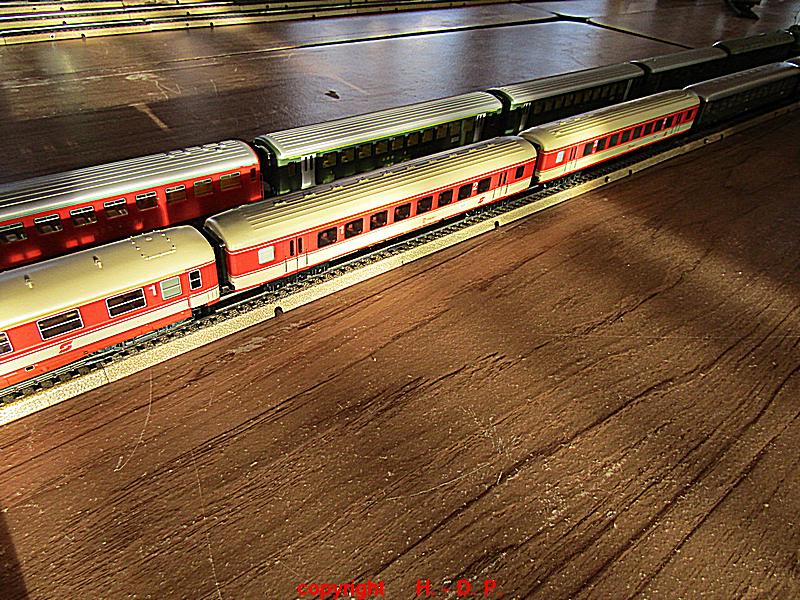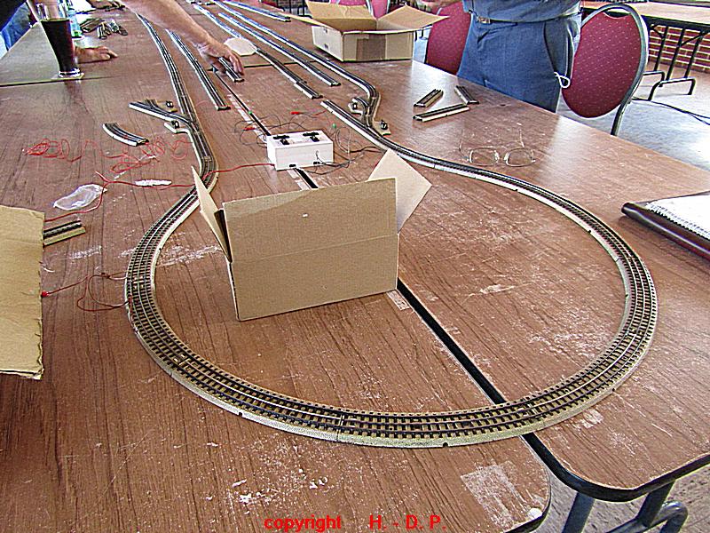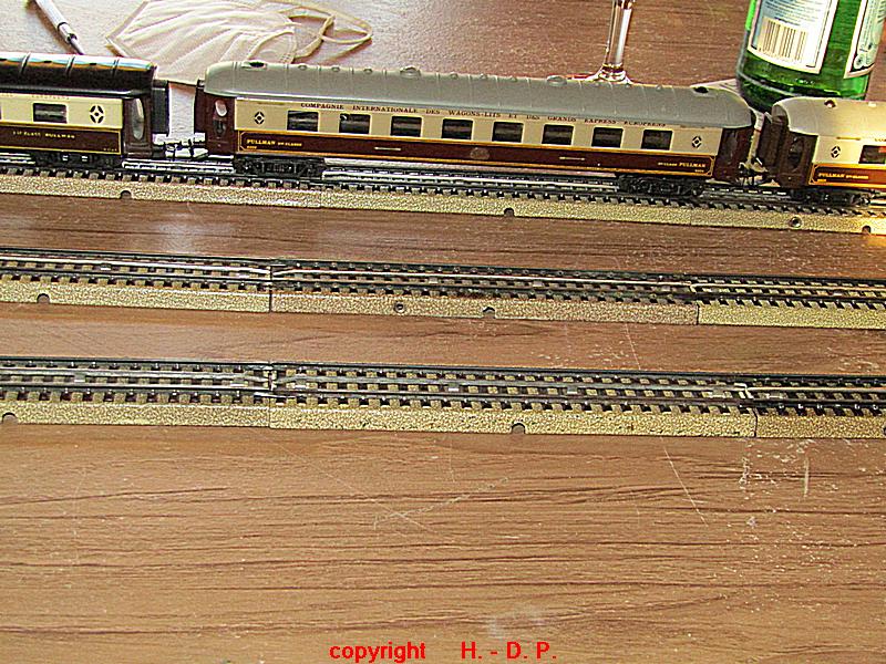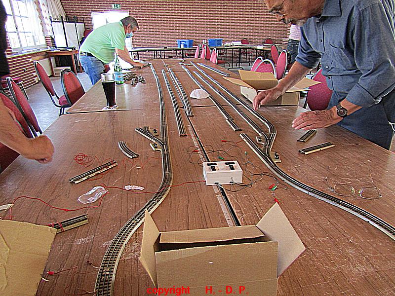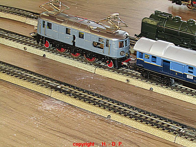 Das ganze hatte aber fast 2 Stunden gedauert, so das unser erster Zug erst gegen 19 Uhr fahren konnte. Aber die Pleiten Pech und Pannen gingen weiter. Immer wieder traten Kurzschlüsse auf, Wagen entgleisten usw.. Die Wagen entgleisten meist in den Kurven und das Problem haben wir dann auch erkannt, denn die schweren Gußwagen und Loks drückten in den Kurven die Schienen an den Gleisübergängen immer wieder um Bruchteile von mm auseinander, denn wir können die Gleise ja nicht auf die Tische schrauben. Für den nächsten Stammtisch werde ich mal doppelseitiges Klebeband mitbringen und da mit die gebogenen Schienen fixieren, ich hoffe das es helfen wird.
